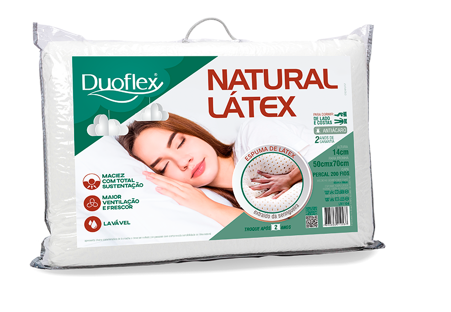 Produzido a partir da seiva da seringueira, o travesseiro Natural Látex é o de maior aceitação no mundo, pois adapta-se com perfeição a todas as pessoas. Sua estrutura permite maior durabilidade e conforto, além do toque mais macio, aveludado e fresco.